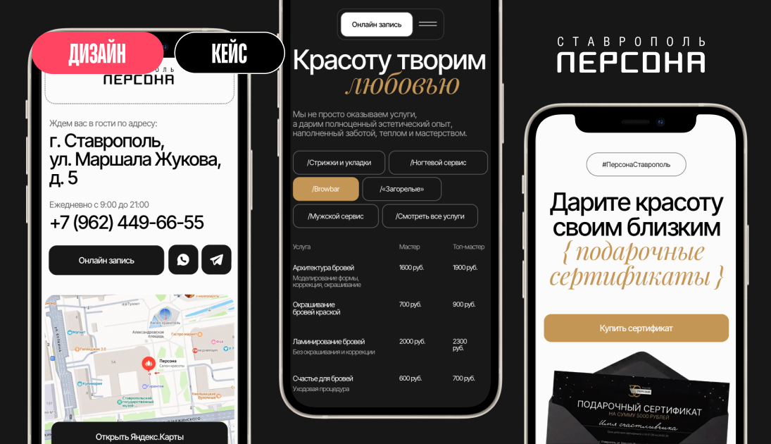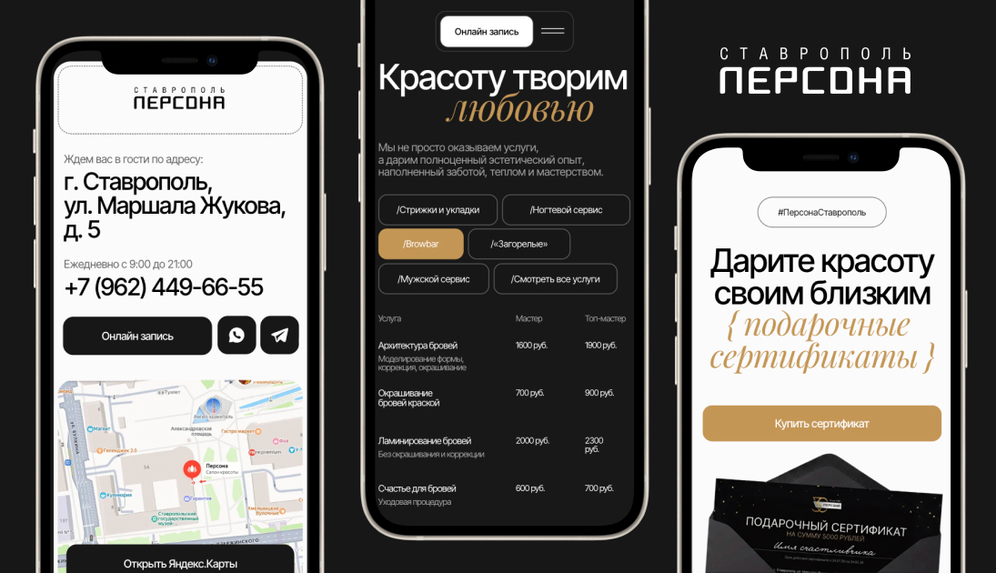 Сайт идеально отражает дух бренда и его премиальность, передавая атмосферу салона еще до первого визита. Но главное – он выделяет ставропольскую франшизу, придавая ей собственный, неповторимый характер, заставляя возвращаться снова и снова.